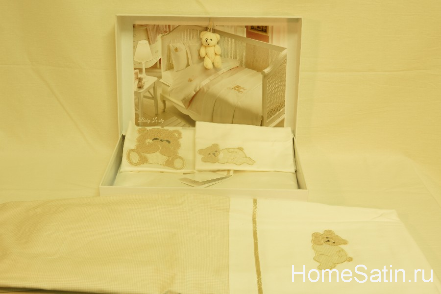 Комплект детского постельного белья "LOVELY BEBE" изготовлен из сатина — ткань, произведенная из хлопковых волокон, скрученных и переплетенных двойным переплетением. Благодаря такому изготовлению, материал получается очень гладким (почти, как шелк) и в то же время имеет все свойства хлопка (не алергенен, прочен, отлично пропускает воздух, почти не мнется, хорошо гладится, выпускается в самых разнообразных расцветках, долговечен). Поэтому этот комплект постельного белья идеально подойдет для Вашего малыша.