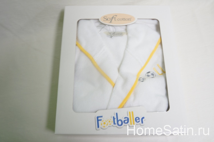 Нежный, очень приятный на ощуп махровый халат для мальчика "Footballer" будет прекрасным подарком для вашего маленького мужчины. Украшен вышивкой и аппликацией. В производстве используются только хлопок высшего качества, что гарантирует высокое качество изделий.