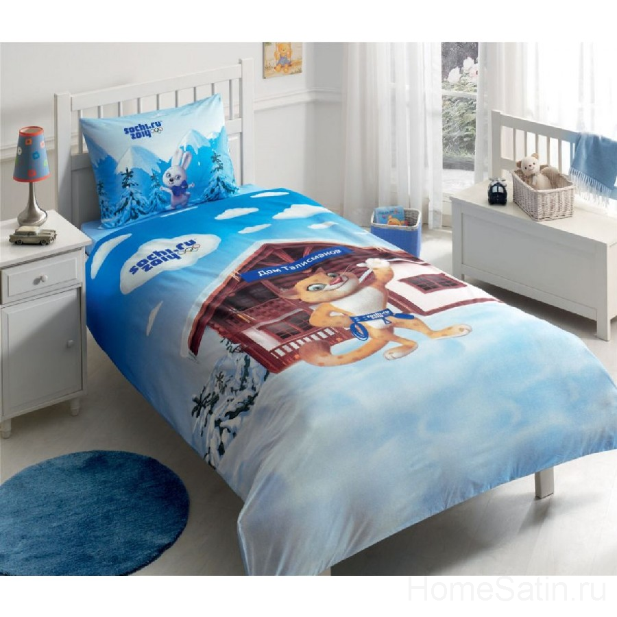Комплект постельного белья "Дом талисманов. Сочи 2014", выполненный из ранфорса, порадует вашего ребенка, ведь засыпать в компании с талисманами зимних олимпийских игр 2014 намного приятнее. Двусторонний комплект состоит из пододеяльника, простыни и одной наволочки. Комплект украшен символикой Сочи 2014, подушка - с изображением зайца, пододеяльник - с одной стороны декорирован изображением барса, с другой стороны - снабжен изображением другого символа олимпиады - медведя. Пододеяльник застегивается на пуговицы.