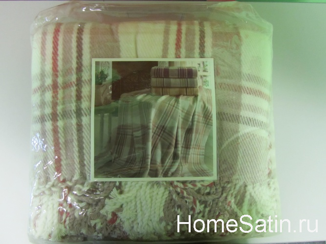 Плед клечатый с бахромой -- 1штука, 200х220 см, 100% акрил