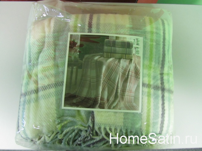Плед клечатый с бахромой -- 1штука, 200х220 см, 100% акрил